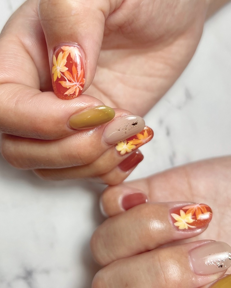 #紅葉ネイル
